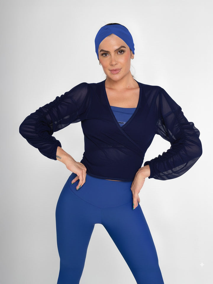 Blusa deportiva Adagio en malla transpirable, con mangas largas recogidas y diseño versátil para anudar al frente o atrás. Fresca, cómoda y perfecta para tu estilo activo.