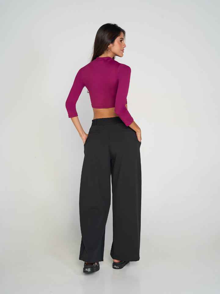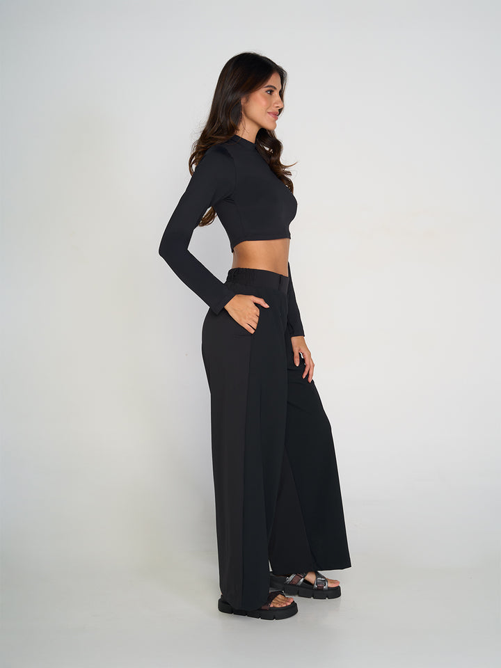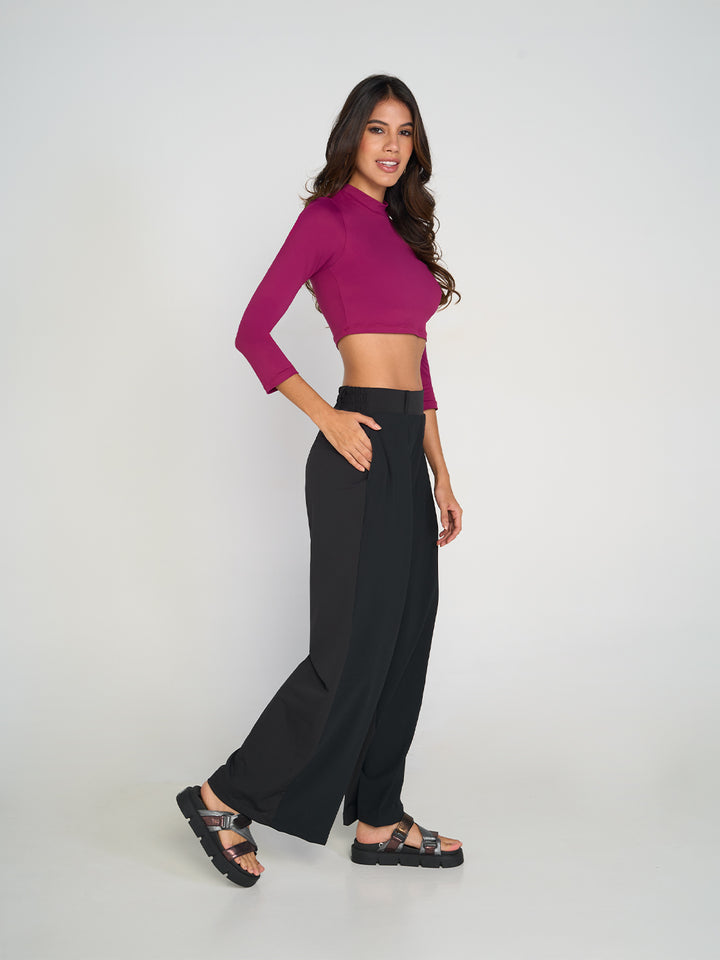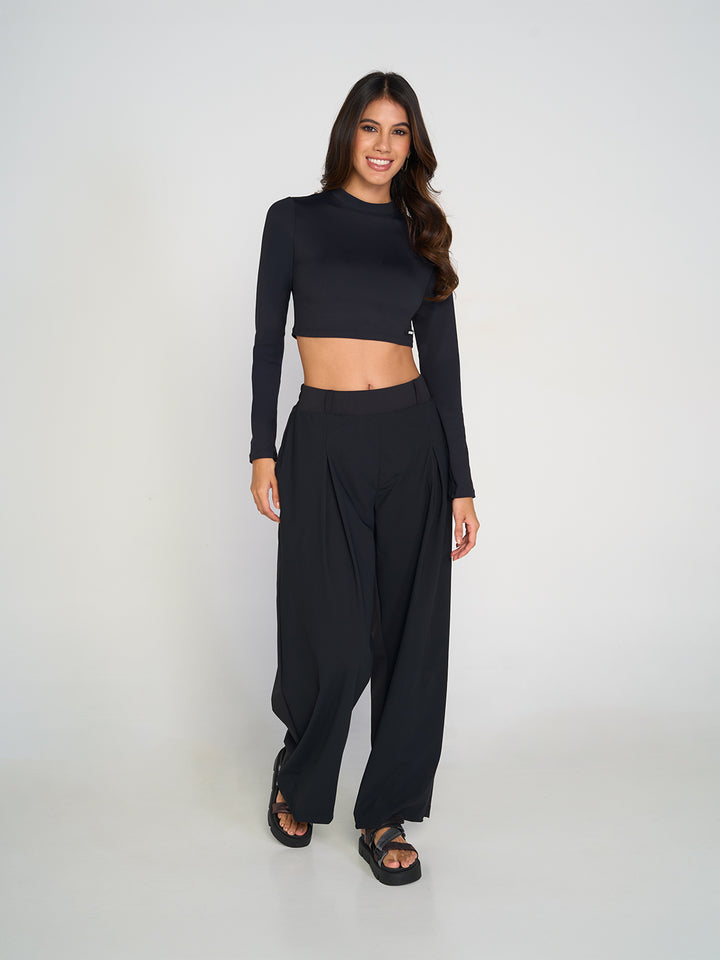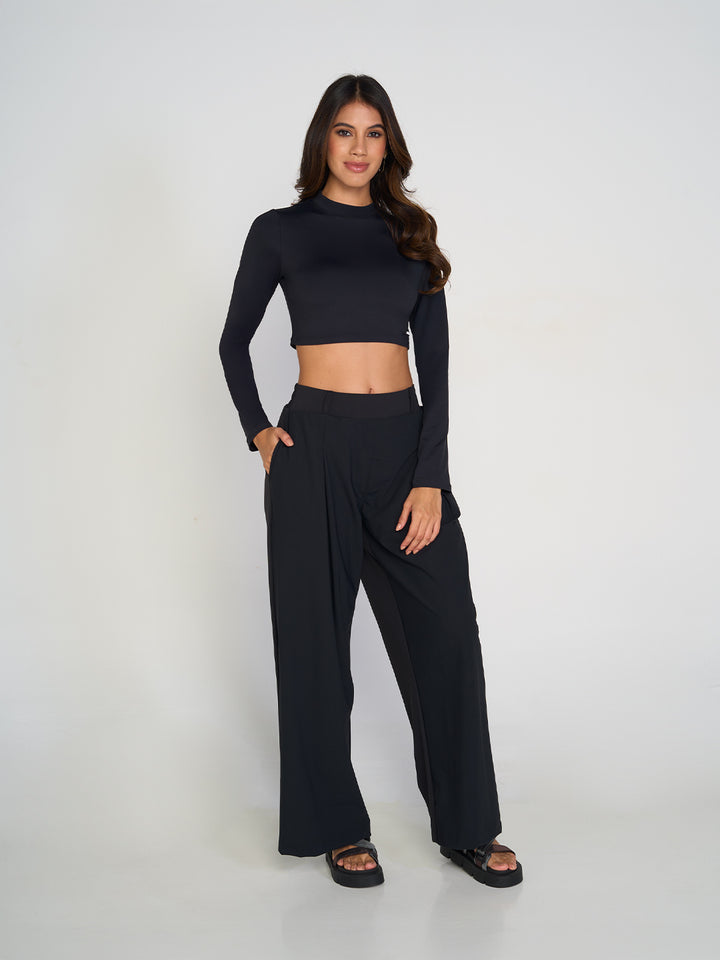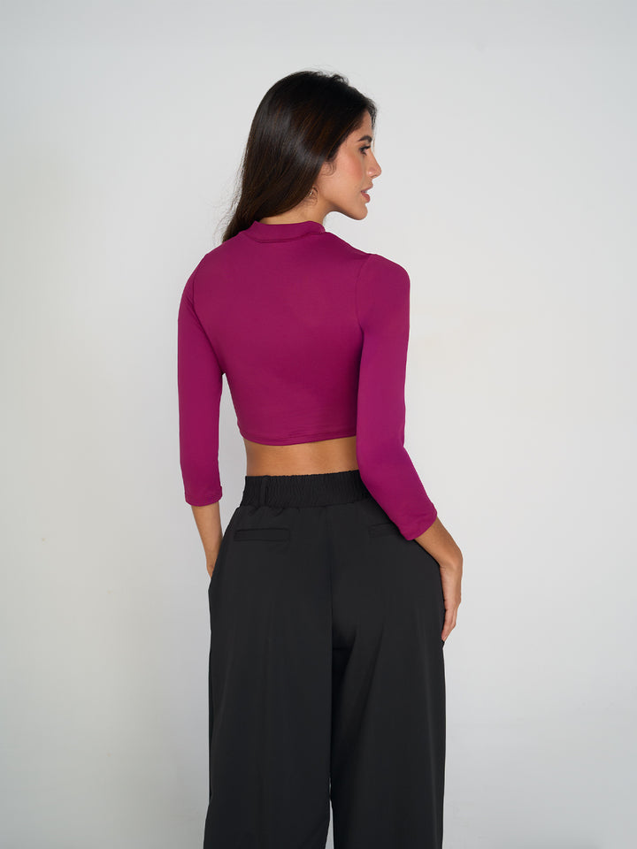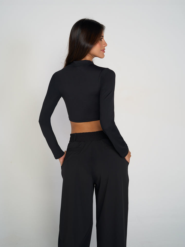 Blusa de cuello alto y manga larga con silueta ajustada que resalta tu figura con elegancia y determinación. Una prenda esencial que combina sofisticación, comodidad y poder femenino en cada detalle.