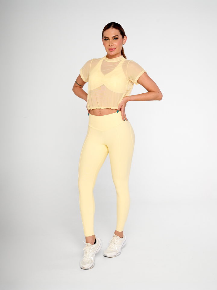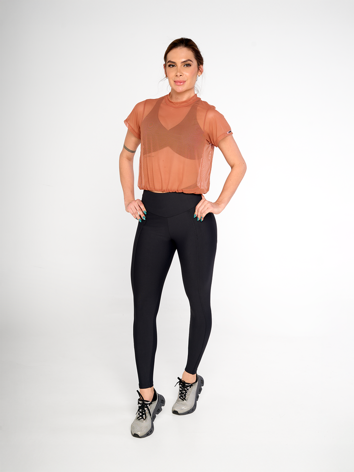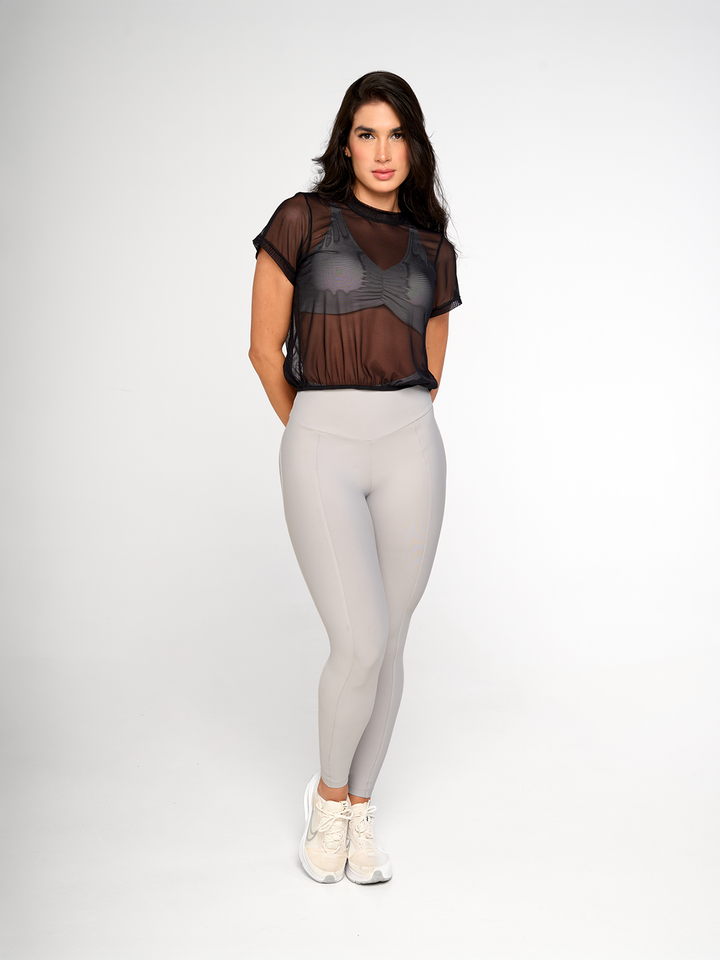 Blusa Mallatex semi ajustada, ligera y fresca. Con elástico en la cintura y aplique en PVC, ideal para entrenar o lucir un look casual con estilo y comodidad.