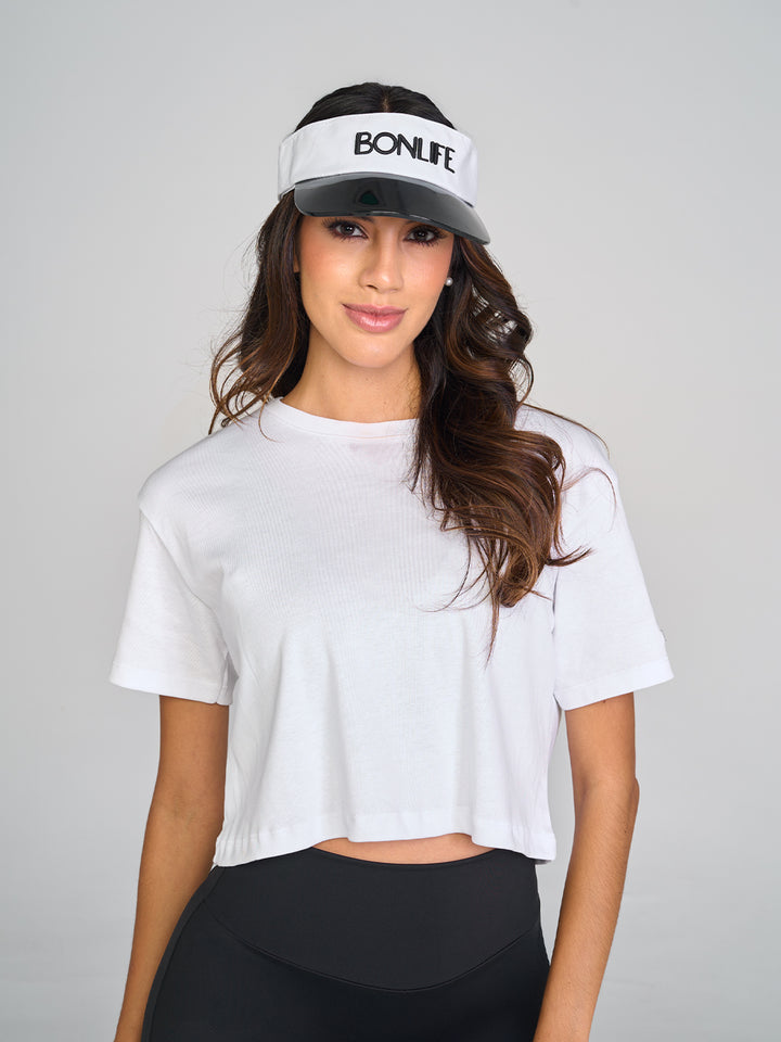 Camiseta crop de silueta urbana y manga corta, con detalle en aplique PVC que aporta un toque moderno y vanguardista. Diseñada para complementar tus looks deportivos y casuales con estilo, comodidad y actitud Bonlife.