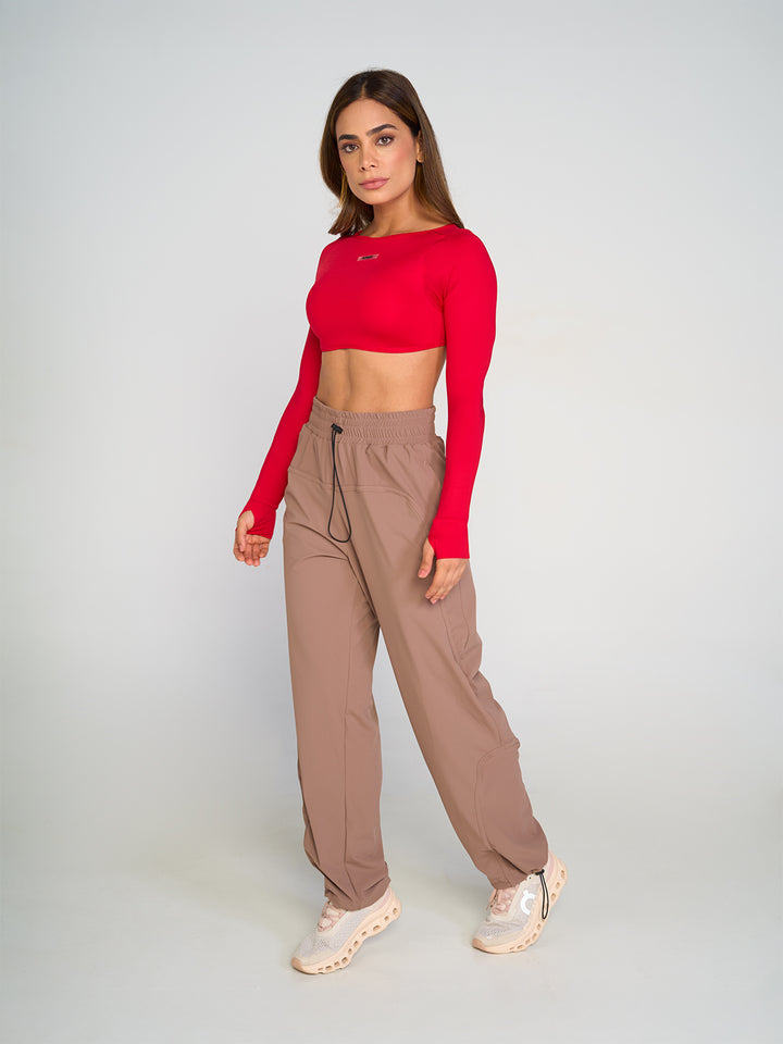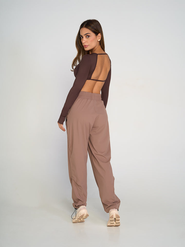 Crop top de manga larga con realce de busto y escote posterior profundo que resalta tu silueta con un equilibrio perfecto entre fuerza, sensualidad y estilo activo.