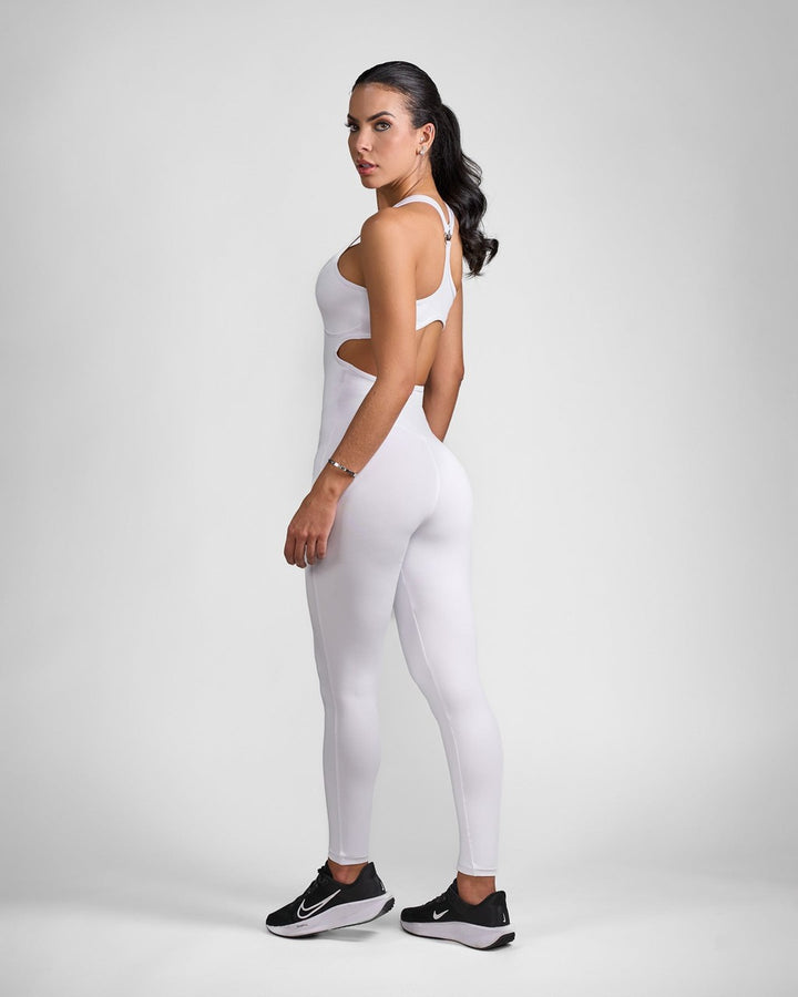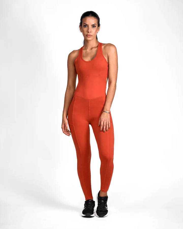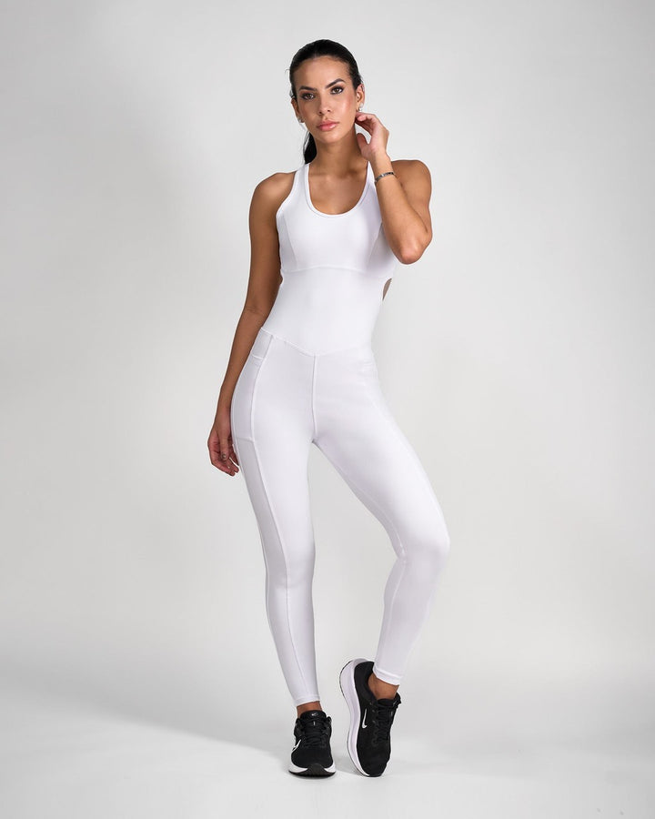 Enterizo Deluxe con copas removibles, bolsillos, herraje funcional y filtro UV. Suave, con máxima elongación y espalda escotada. 88% Poliamida - 12% Elastano.