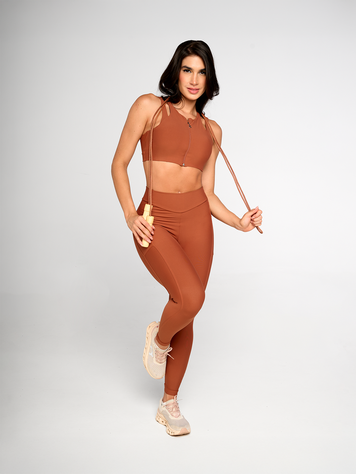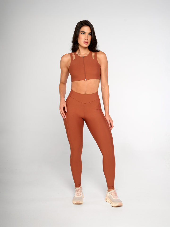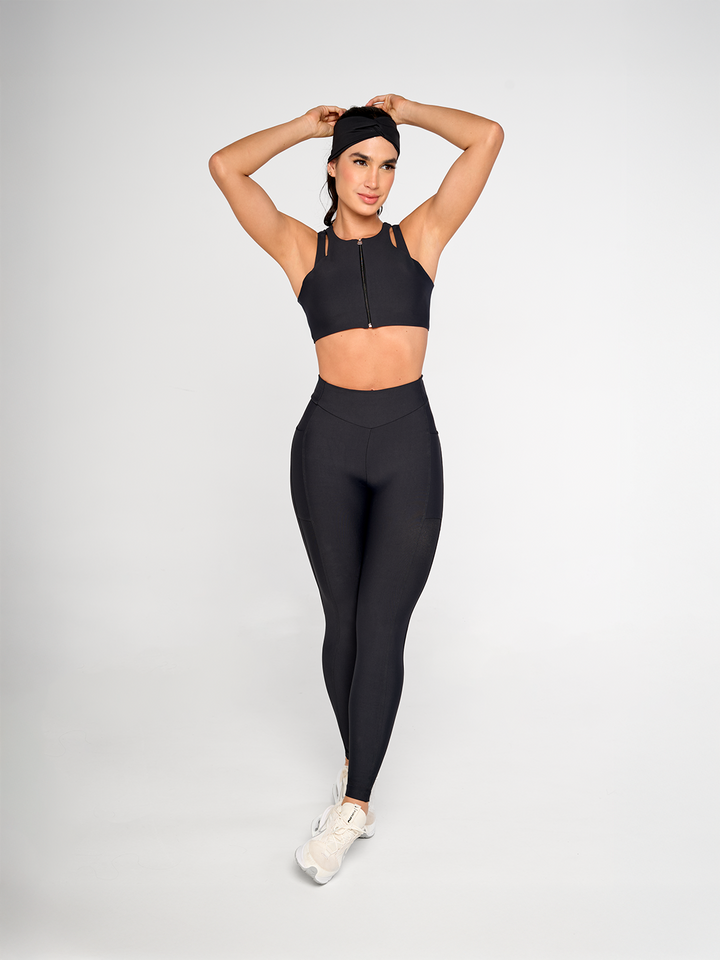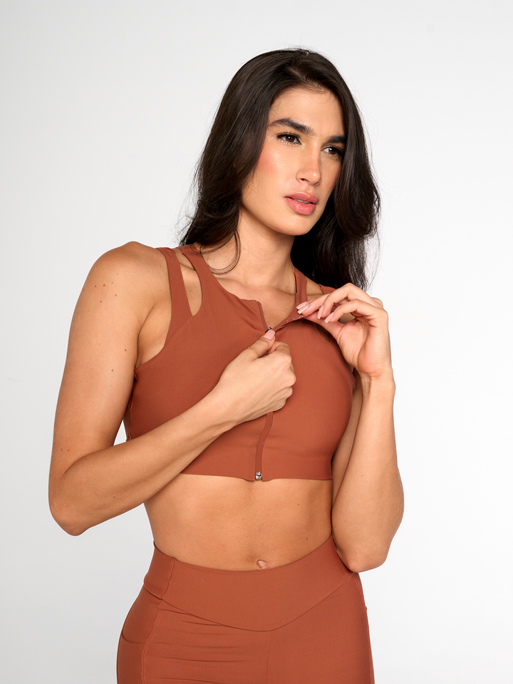 Este top Aurora combina estilo y funcionalidad con su escote redondo, cierre frontal práctico y espalda cruzada que ofrece un look atlético moderno. Perfecto para entrenamientos o un outfit casual, su diseño asegura comodidad y libertad de movimiento mientras realza tu figura. Ideal para quienes buscan versatilidad sin perder estilo.
