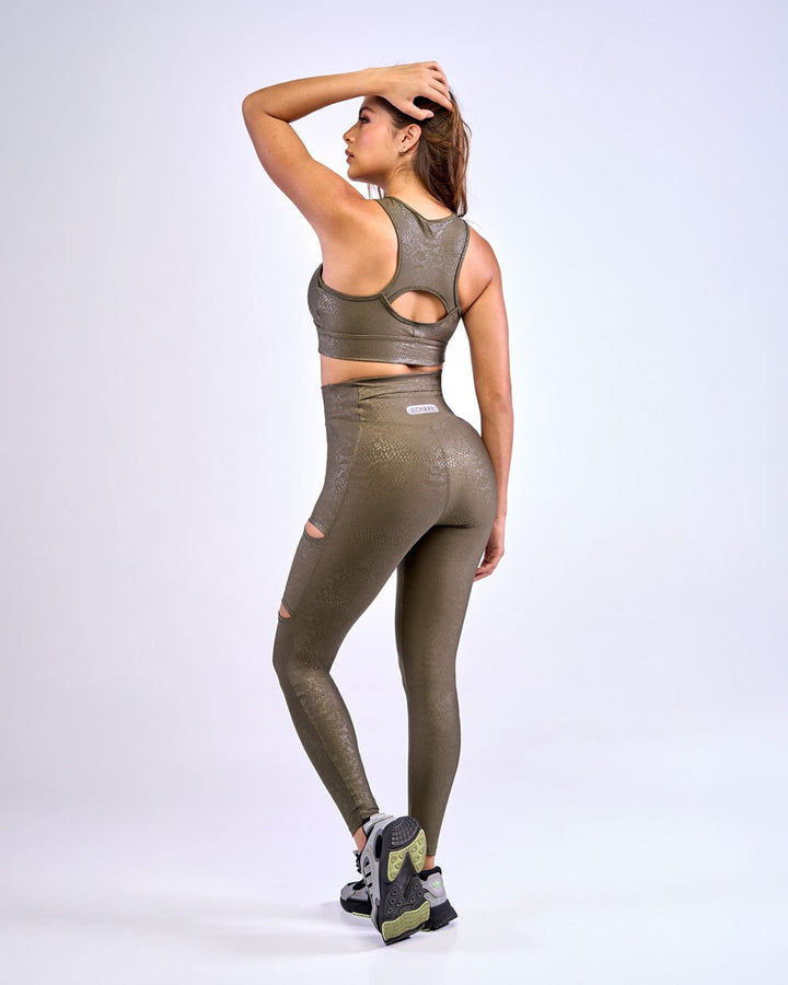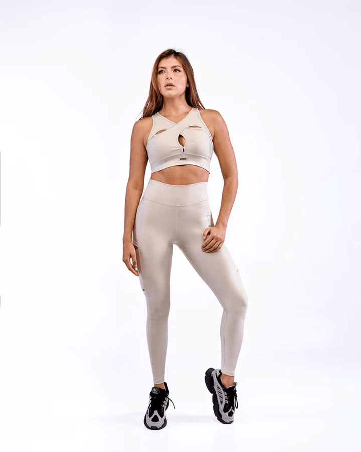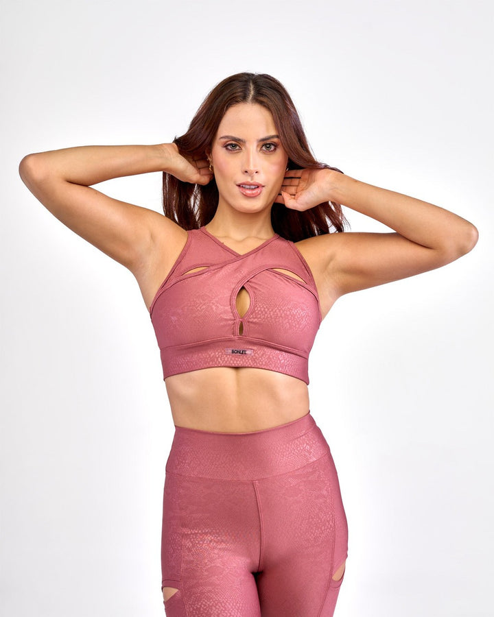 Top Envolvente con realce de busto y espalda atlética, que combina elegancia y rendimiento. Tela satinada suave y elástica para máxima comodidad y estilo en cada entrenamiento.
