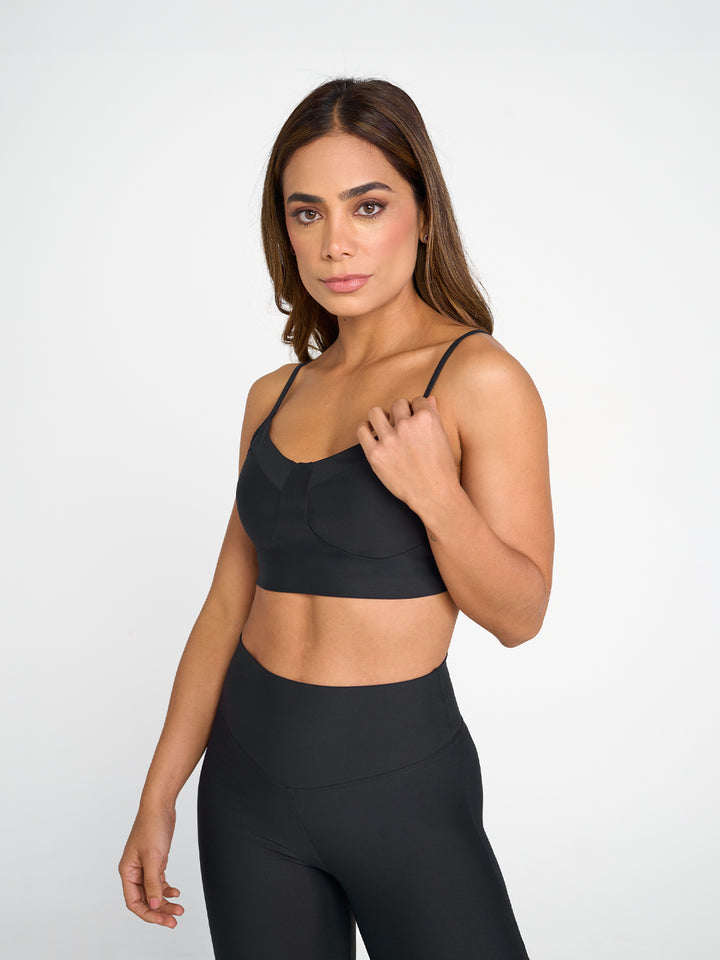 Top con realce de busto y tiras ajustables que se adaptan a ti para un ajuste perfecto. Diseñado para estilizar tu figura y ofrecer comodidad con actitud, acompañándote en cada movimiento con seguridad y estilo.